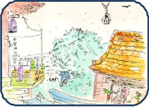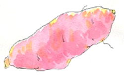 1.さつま芋はたわしで洗い、輪切りにして、塩水に