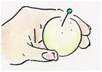 タマゴの丸いお尻の方にマチ針で5ヶ所