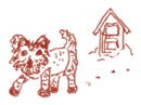 ニットの上下を着用した犬