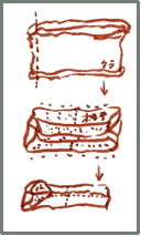 細長く裁断した布を中表にして輪に縫い、