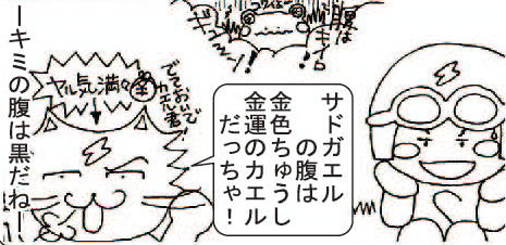金(=黄)の腹抱えた幸運のサドガエル♪