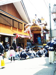 町の男衆が引く【たな】。山車のよう