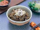海藻のエゴ草をトコロテンのように煮詰めて固め、そばのように刻んでネギやワサビなどの薬味をつけ、醤油をかけて食べる「いごねり」。さっぱりとした磯の風味が楽しめる。佐渡の代表的な食品だ。