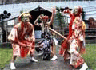 麻の頭巾をかぶった銭太鼓(醜女)の三者がたわむれながら舞い踊ります。