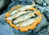 焼いた石の上に佐渡銘産の味噌で土手を作り、その中で鮎を焼いて食べる、