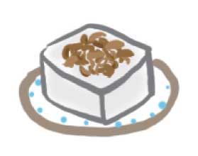 冷奴がおいしい季節になりました。 体にとってもうれしいお豆腐を、毎日食べたいものです。 ビールのおつまみに、ご飯の一品に! ねぎ 小口切りが定番ですが、白髪ねぎにすると違った食感が楽しめます。 みょうが ![]() 薄切りにして、水にさらしてどうぞ。 生姜 すりおろしはもちろん、生姜の香りを楽しみたい方は細い千切りに。 削り節 ![]() 削り節の健康パワーで栄養アップ! キムチ納豆 キムチは細かく切ると、舌触りがよい。納豆は、ひきわりがおすすめ。 梅オカカ 細かくたたいた梅を、削り節と混ぜます。梅の風味がさわやか! オクラとじゃこ 熱湯でさっとゆがいたオクラを小口切りにしてじゃこと混ぜます。 ニラ・ごま油 ニラはさっとゆで、冷水に浸し水気を絞ってから豆腐にのせ熱々のごま油をかけて。 パリパリの桜えびのアツアツのごま油をかけて ![]() 桜えびをから削りし、豆腐にのせた後熱々のごま油をかけて。 カリカリお揚げとさっぱりおろし。 細切りにした油揚げを網やトースターなどで焼き、だいこんおろしを添えて。 大葉・ポン酢すり胡麻 ![]() ポン酢にすり胡麻を混ぜ、大葉をのせた豆腐にたっぷりかけてどうぞ。 豆腐の栄養 ■健康食 ■美容食 ■長寿食 畑のお肉といわれる大豆からつくられる豆腐は、 良質なたんぱく質や脂質の含有量が多い栄養価の高い食品です。 豆腐に含まれるたんぱく質は、含有量が多いうえに食物からしか取れない「必須アミノ酸(8種類)」が バランスよく含まれるため、栄養価が高く良質であるという特質があります。 最近では、ガン・高血圧・動脈効果・心臓病・糖尿病あるいは 成人病・肥満等々発症の抑制や回復、健康維持に果たす食品の機能(機能性食品)が注目されています。 大豆は消化のよくない食物とされていますが、豆腐として摂取すると、92〜82%消化吸収されます。 そのため、一般の人はもちろん病人・老人・離乳食にも適しています。 ■タンパク質・リノール酸 血圧・コレステロール抑制 ■レシチン 脂肪代謝・脂肪肝にも ■レシチン・コリン 記憶力アップ・ボケ防止に ■サポニン 活性化酸素抑制・成人病予防 ■イソフラボン 女性ホルモン効果・骨粗鬆症 ■トレフシンインヒビタ 糖尿病の治癒や予防に期待 ■オリゴ糖 腸内の善玉菌・ビフィズス菌を増やす。 ■ビタミン類 美肌などに効果 ■カルシウム 骨や歯、ストレスにも効果 特集TOP エスライフTOP |
